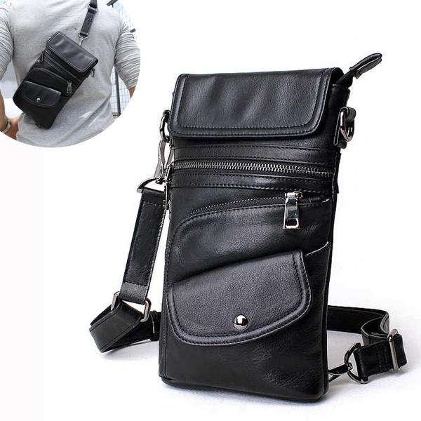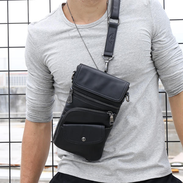 • Bullcaptain® Men Genuine Leather Multifunction Torba Crossbody Torba na ramię Chest Pack Talii Bag