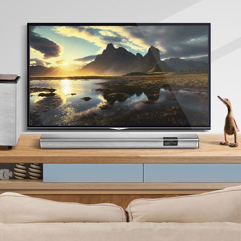 Wyśmienity metal + wygląd drewna Kanał audio i subwoofer 2.1 Tryb wielu scen i 5-kierunkowy tryb wprowadzania Automatyczne włączanie / wyłączanie Ekran dotykowy & Pilot |