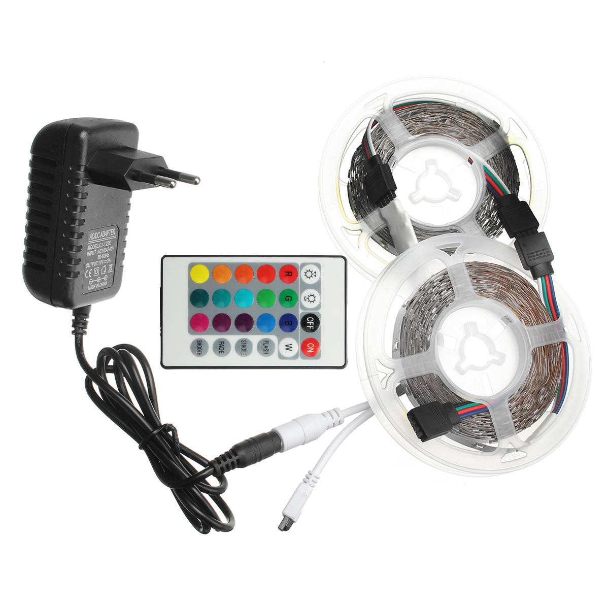 • DC12V 2M 3M 5M 10M Wodoodporny pasek świetlny z diodami LED RGB 2835 + 24 klucze IR Pilot + wtyczka zasilająca UE Pełny zestaw