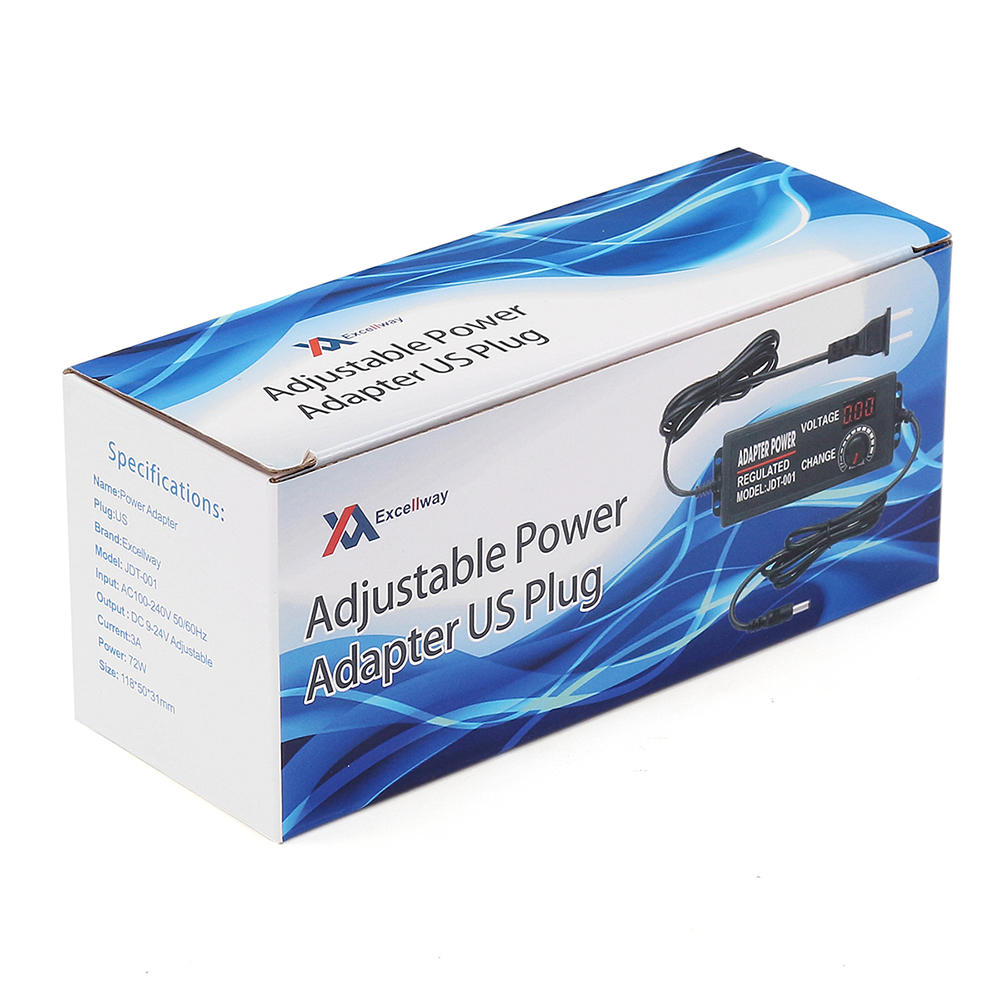Excellway® 9-24V 3A Zasilacz 72 W AC / DC Przełącznik zasilania Regulowany zasilacz Wyświetl wtyczkę UE COD