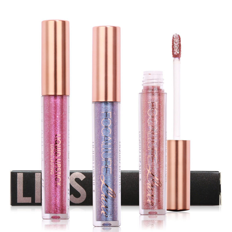 • FOCALLURE 6 kolorów Metaliczny matowy błyszczyk Liquid Diamond Glitter szminki Kosmetyki do makijażu