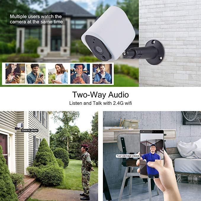 Aparat bezpieczeństwa akumulatora i zasilacz non-stop: Zewnętrzna zasilana bateryjnie kamera bezpieczeństwa HD 1080P z wbudowanym akumulatorem 6400 mAh P, która działa stabilnie z WiFi 2,4 GHz, dzięki czemu jest w 100% bezprzewodową kamerą bezprzewodową. Nieprzerwane zasilanie panelu słonecznego, uniknięcie kłopotów ze zdjęciem kamery bezpieczeństwa zasilanej energią słoneczną w celu naładowania, jeśli panel słoneczny dostanie 3 dni bezpośredniego nasłonecznienia co miesiąc.