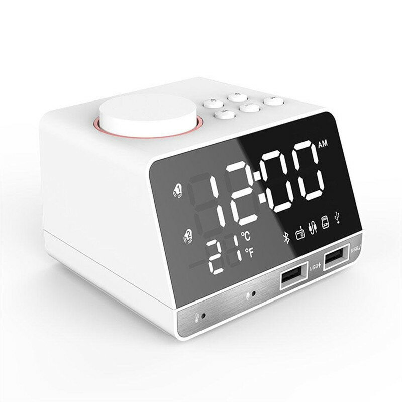 1. Wielofunkcyjny zegar - to urządzenie z budzikiem może być jako głośnik Bluetooth + cyfrowy budzik + podwójna stacja ładująca USB + wejście AUX, dysk USB i karta TF Card + termostat pokojowy + cyfrowe radio FM + ładne lusterko do makijażu + ręce Bezpłatne połączenie telefoniczne.