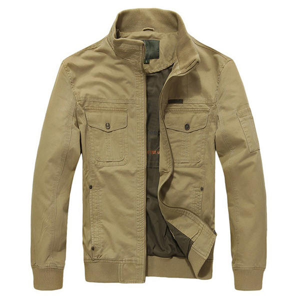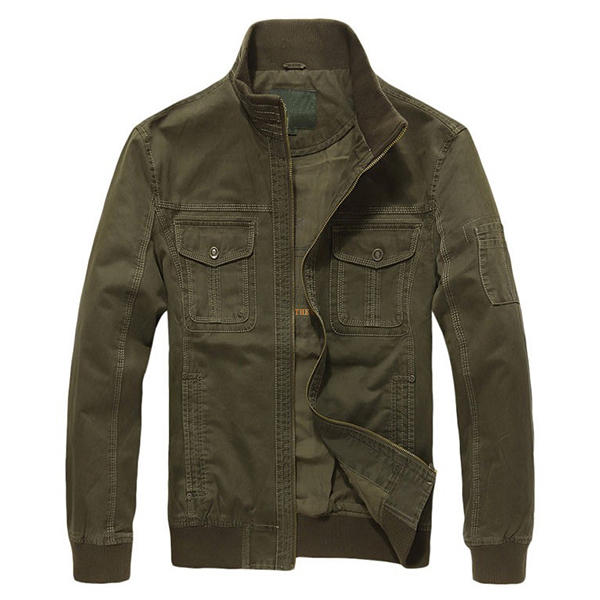 Mens Military Cotton Wearable Chest Pockets Zipper Outwear Jacket