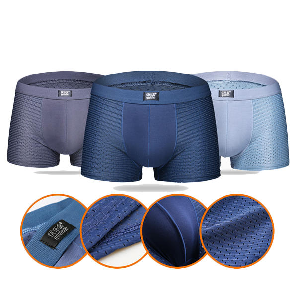 • Męskie Oddychające Siatki w kształcie Plastra Miodu Miękkie gładkie wygodne figi bokserskie z bordowego jedwabiu