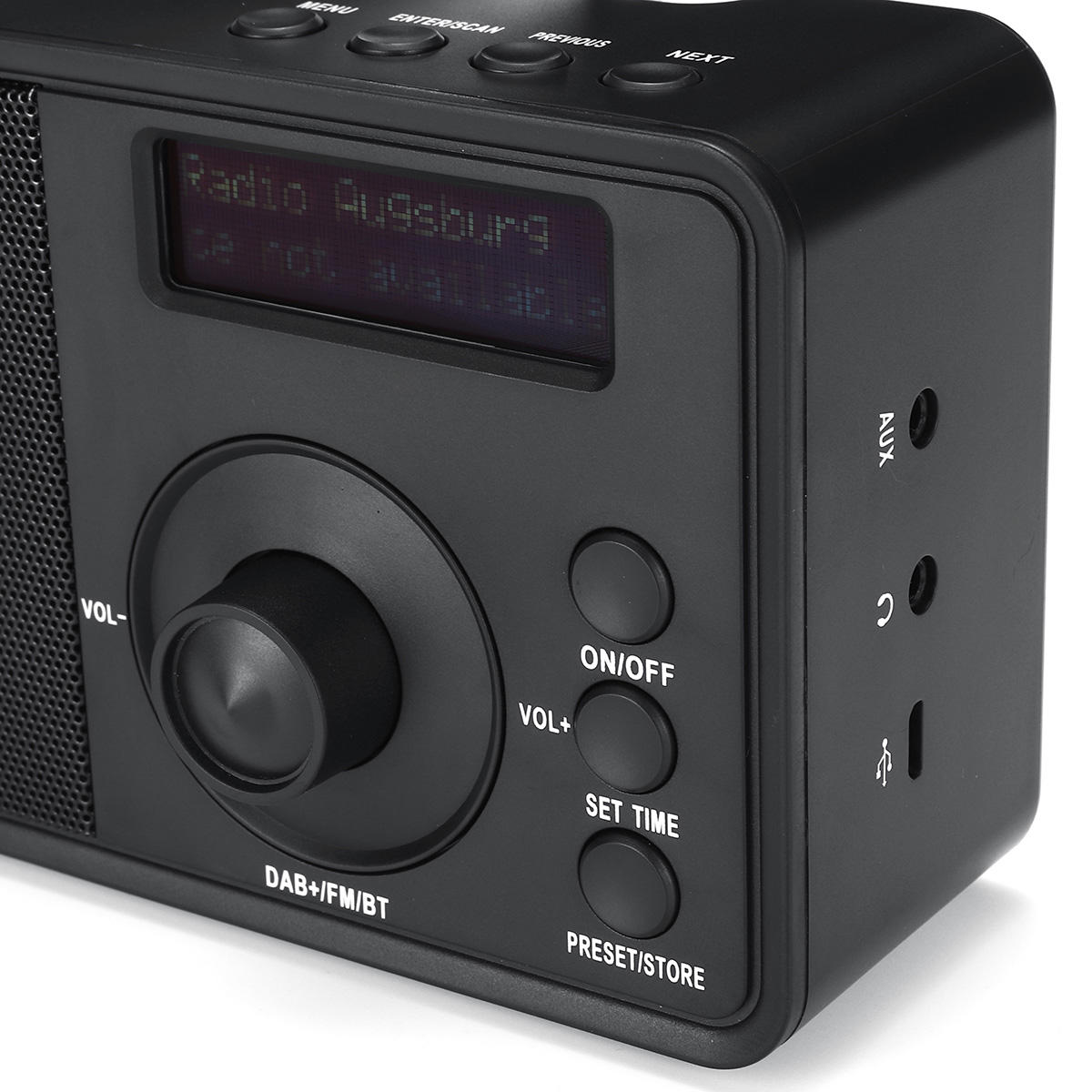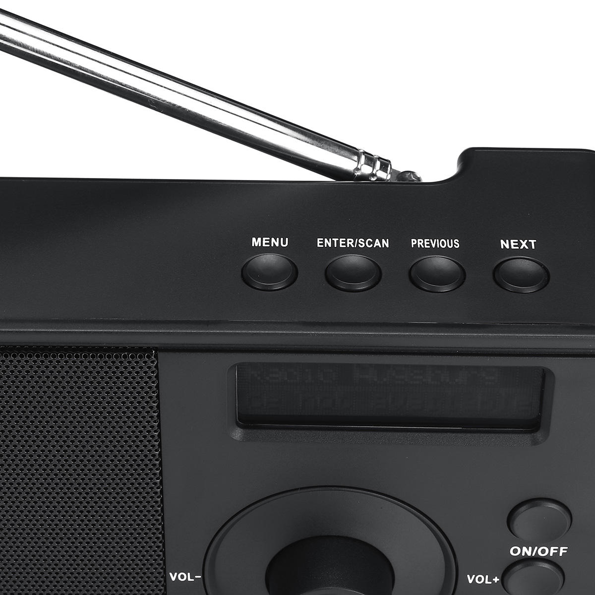 Z ekranem LCD, czytelnym zegarem, nazwą kanału DAB lub częstotliwością radiową FM, mocą sygnału, baterią i głośnością.