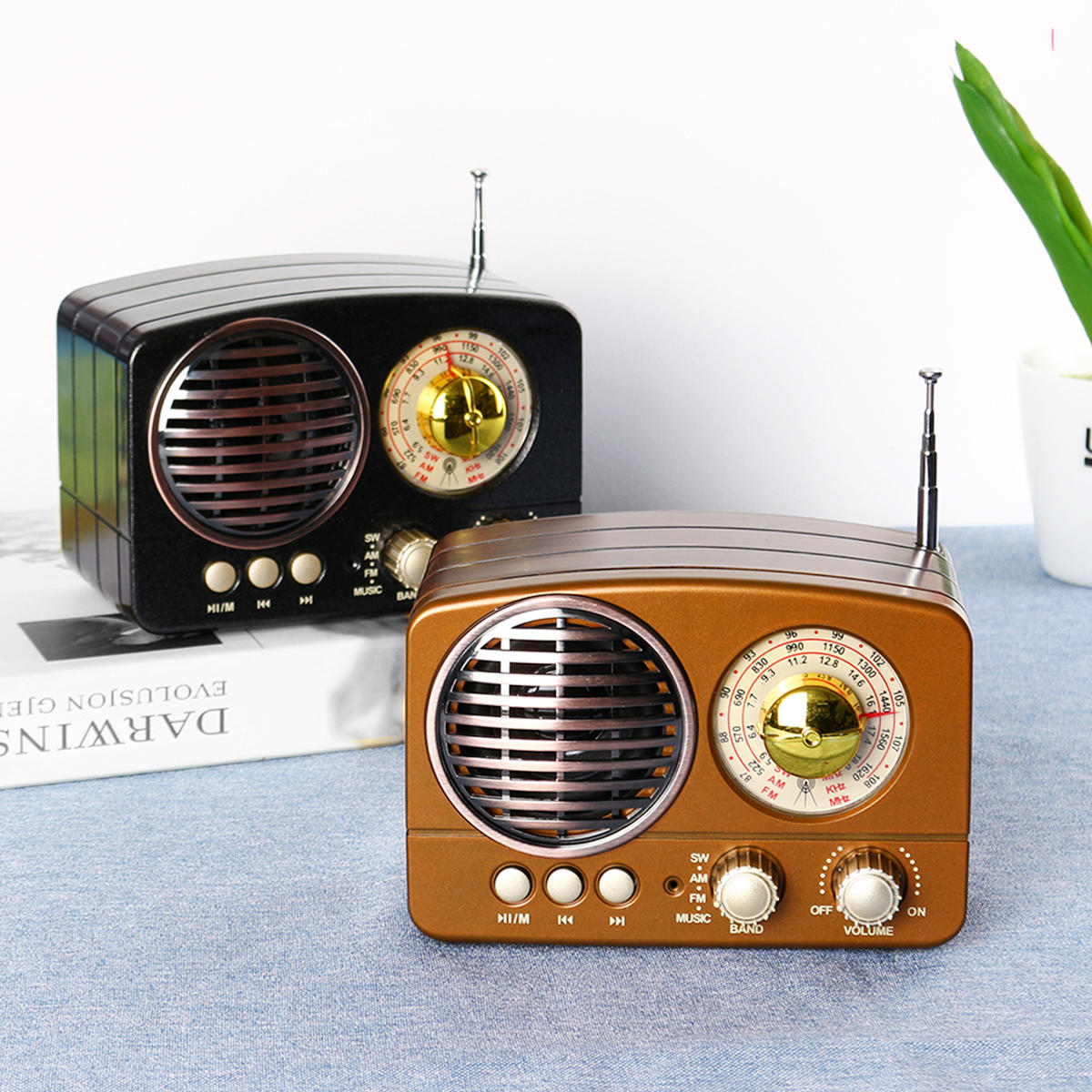 Potable 5W Retro Wireless Bluetooth Mini HIFI Głośnik Stereo Hansfree Zestaw słuchawkowy Wsparcie FM AM SW USB AUX TF Card COD