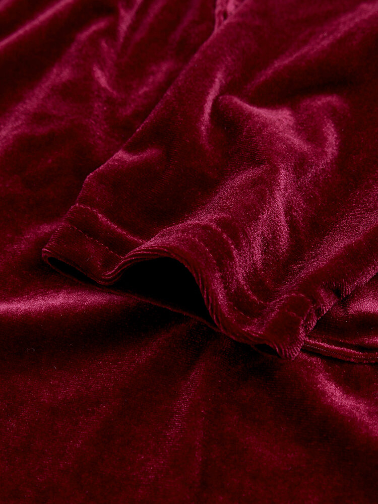 Zgrabny kołnierzyk Pure Color z długim rękawem i aksamitnymi trenczami