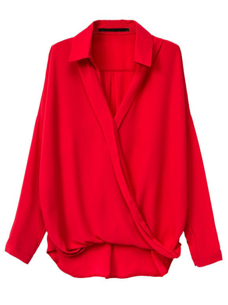 Sexy Asymmetrical Cross V Neck Office Lady Chiffon Lapel Blouse