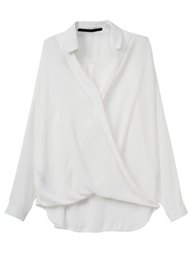 • Sexy Asymmetrical Cross V Neck Office Lady Chiffon Lapel Blouse