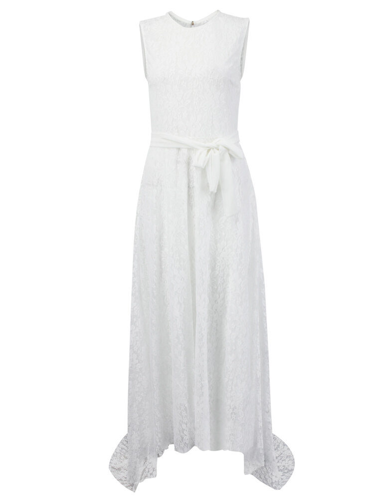 • Seksowna koronkowa sukienka bez rękawów Maxi wieczorowa dla kobiet z paskiem