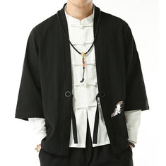 Męska koszulka bawełniana w stylu chińskim z luźnym t-shirtem z krótkim rękawem