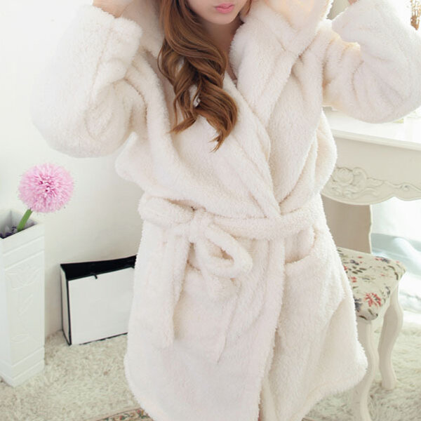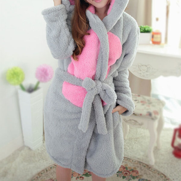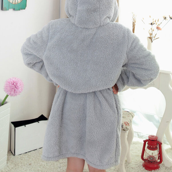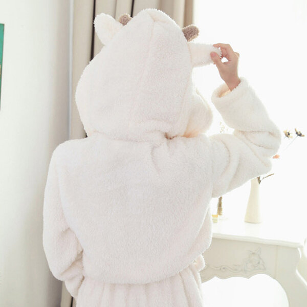 • Women Men Comfy Hooded Bathrobe Zagęścić Coral Velvet Lovely Animals Robes