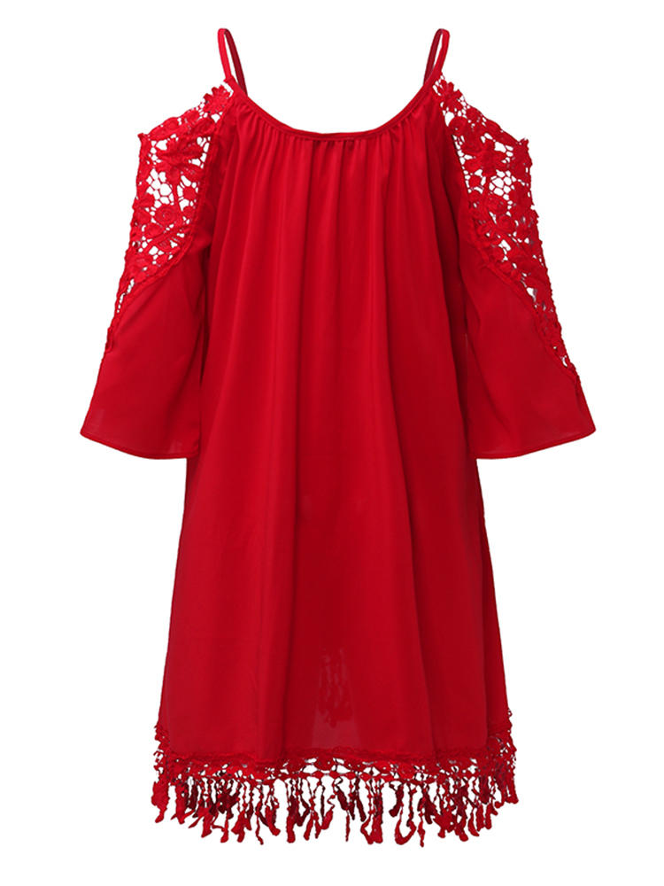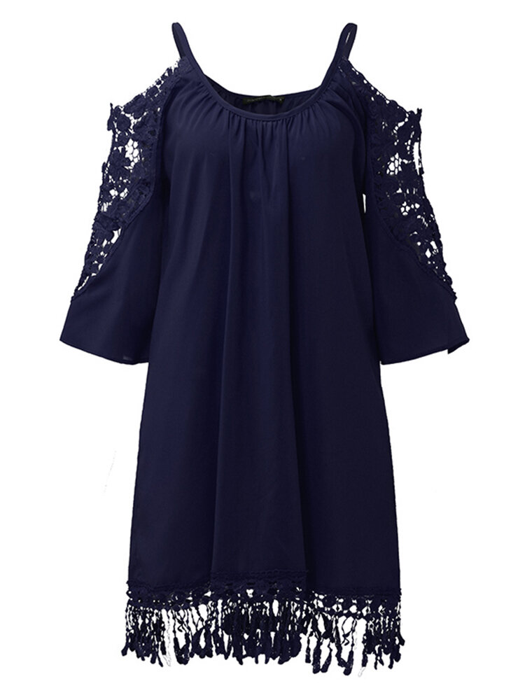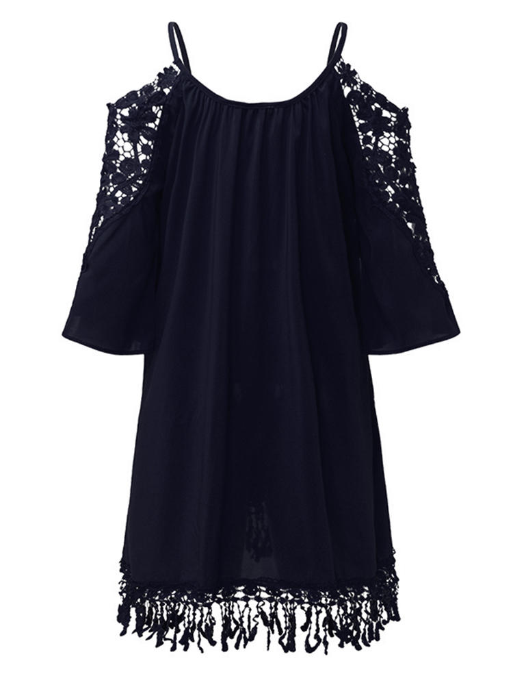 • Kobiety Off Shoulder Lace Strap Hollow Half Sleeve Casual Mini Sukienki