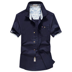 Męskie bawełniane koszule z krótkim rękawem i kieszenią