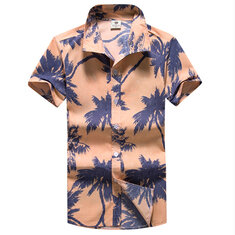 Beach Holiday oddychające szybkie suszenie Coconut Tree Printing Luźny salon z krótkim rękawem Męskie koszule
