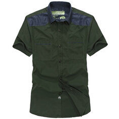 Męskie odkryte pranie Cargo Kieszenie na piersi Solid Color Down-Down Collar Casual Shirts