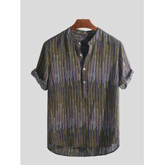 Mens Ethnic Style Printed Colorful Stripe Luźne koszulki